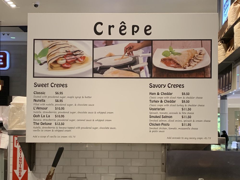 Filled with Nutella, powdered sugar, and chocolate sauce.